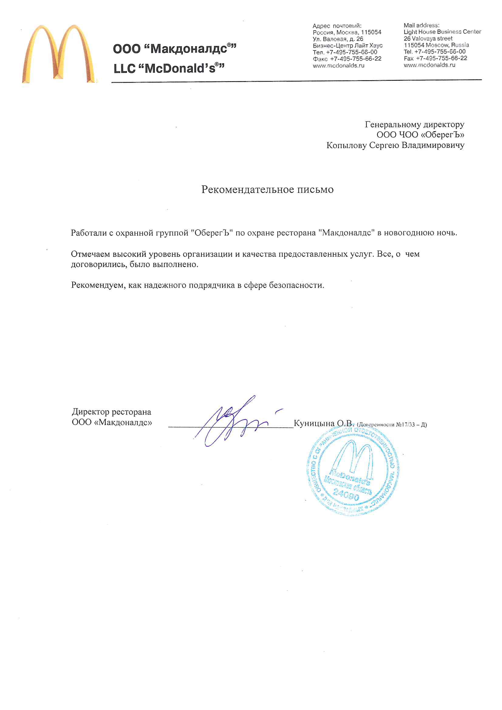 • профессиональному подходу, соблюдению конфиденциальности;
